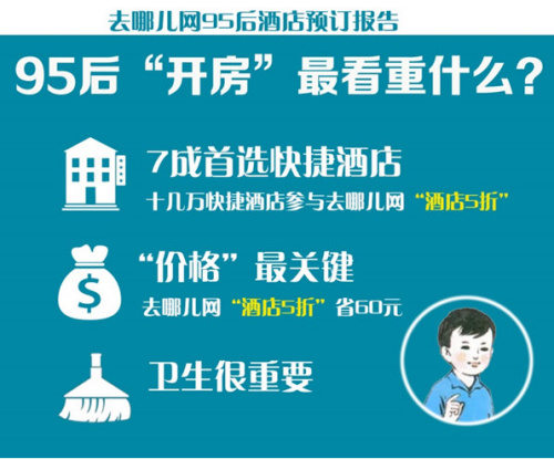 报告显示,三四线城市95后已成新晋主力“开房”人群,年均酒店入住5至10次。从酒店星级上来说,72%的95后大学生首选快捷酒店。