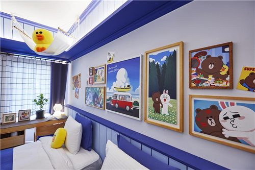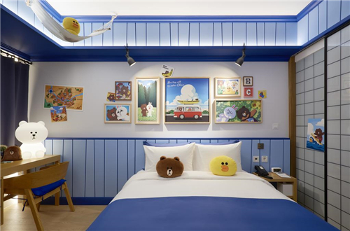 LINE FRIENDS与首尔明洞黄金郁金香M酒店合作推出主题套房,主题套房位于酒店14楼,分为清爽蓝色系布朗熊和爱心粉色系可妮兔。