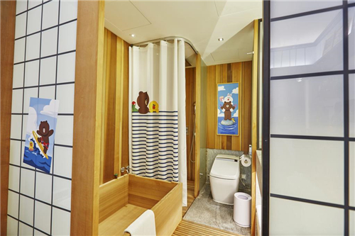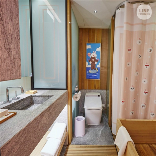 ▲浴室也放满了LINE FRIENDS风格的产品。