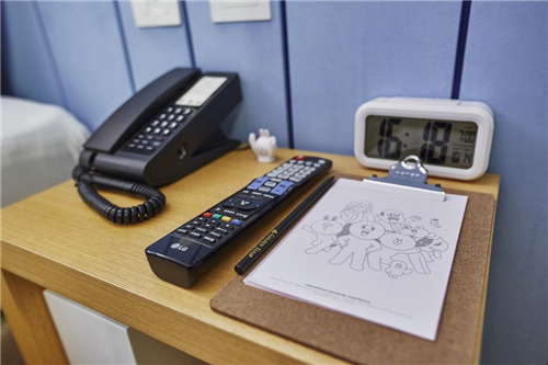 主题套房坐落在酒店的14楼,按设计风格分为清爽蓝色系布朗熊和爱心粉色系可妮兔。