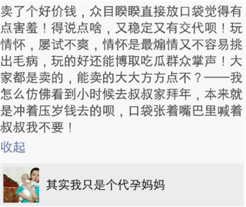 谜团3:吴叔这个“代孕妈妈”,是个人情怀还是效果炒作?