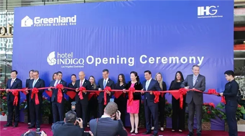 洛杉矶市长Eric Garcetti、众议员Miguel Santiago、市议员Jose Huizar、洛杉矶市副市长陈纾桦,中国驻洛杉矶总领事馆商务参赞刘海彦,绿地集团执行副总裁兼绿地酒店集团董事长张蕴、绿地美国公司CEO胡刚、IHG美洲首席运营官Jolyon Bulley、洛杉矶绿地英迪格酒店总经理Raymond Vermolen为酒店开幕剪彩。中国驻洛杉矶总领事刘健大使发来贺信。