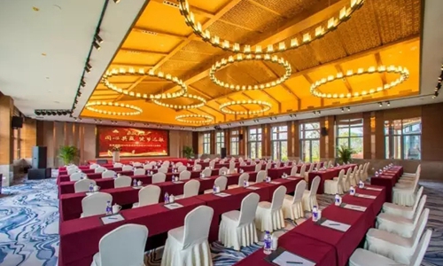 酒店拥有7个不同规格的多功能厅及会议室,可满足高档宴会和会议所需。伯瑞厅配有近30余平方米的室内LED显示屏,超强视听震撼,尽显非凡气度;更设独立新娘化妆室,同时可直接通往室外泳池花园,是举行隆重宴会及各类泳池Party之首选理想场所。