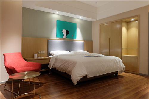 酒店建筑面积1.1万平方米,拥有154间(套)艺术客房,以红、绿、蓝三原色为基础色调碰撞出高纯度艺术之美。