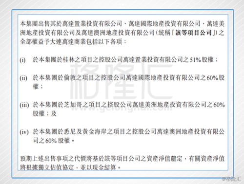 2、出售原本万达酒店发展的项目,一共4个项目,卖完后,原本的万达酒店发展就没剩什么了。