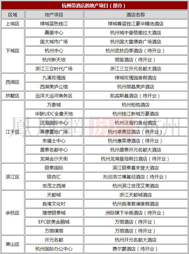 杭州部分带酒店的地产项目(凤凰网房产/制)