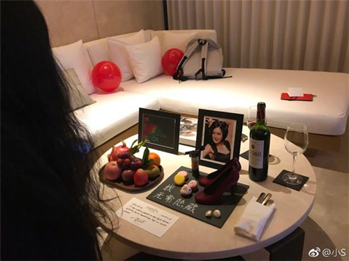 小S近日PO出一张入住酒店照片,直言“很貼心的歡迎,但擺設法怎麼感覺在跟我道別^_^ ” 。