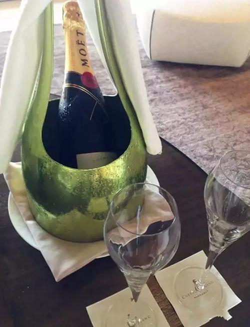 看清楚了,可是一整瓶酩悦香槟哦,酩悦香槟曾因法皇拿破仑的喜爱而赢得“Imperial(皇室香槟)”的美誉。壕不壕啊!