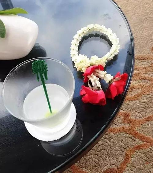 既然是度假酒店,从Check-in开始就有礼物收了,一杯柠檬姜茶,还有当地编织的花环。一下子心情就放松了。