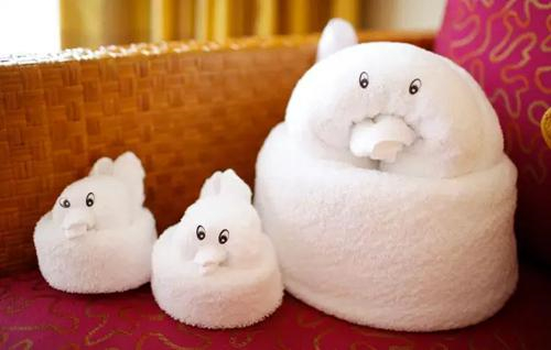 如果是带着孩子的家庭出行,心灵手巧的客房工作人员每天都会摆出不同小动物造型的浴巾,让孩子们惊喜连连。