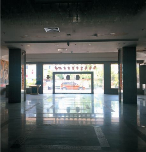 整座酒店已经关闭,多年前那个繁华的饭店已经变得空荡荡的,除了办公室的工作人员,记者并未在这座楼里再碰到其他人。空旷的一楼大厅因为缺少灯光的照射显得十分昏沉,部分墙面也有轻微脱落的迹象。