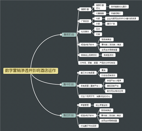 (注意:以下图示仅为展示数字营销如何渗透酒店运作环节,所涉及的举例,任何营销策略和手段,并无绝对)