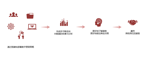 通过一系列数字营销的技术和手段,完成顾客最终的转化,在这个过程中,每一个环节所收集到的顾客数据,才是我们搭建和部署数字营销策略的核心,也就是说,企业在进行数字营销策略的制定时,要明白我们最终的目的并非只是顾客购买酒店的产品,而是在购买或体验过酒店产品、成为忠诚顾客后,贡献出相应数据,通过数据的积累和使用,使得酒店集团能够愈加了解顾客,或投其所好地进行产品开发、或提供个性化服务,最终形成良性循环,直到顾客的忠诚度进一步加强,成为品牌的拥护者。