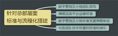 在这里,我们简单地将总部层面所需要设立的标准和基础分为2个层面,第一个层面是面相旗下所有酒店的部分,另一个层面是面相总部其他功能团队。