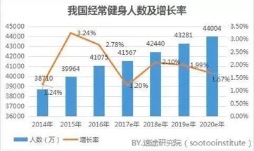 我国经常健身人数、增长率走势及预测(来源:速途研究院)