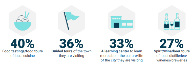 根据调查,旅客最感兴趣的体验活动包括: