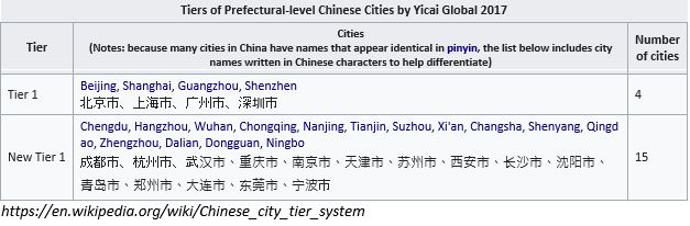 第一财经根据相关数据将中国338个城市划分为一线到五线城市,其中一线城市4个,“新一线城市”15个。按照城市等级对酒店开发活动进行分析则是另一种模式。