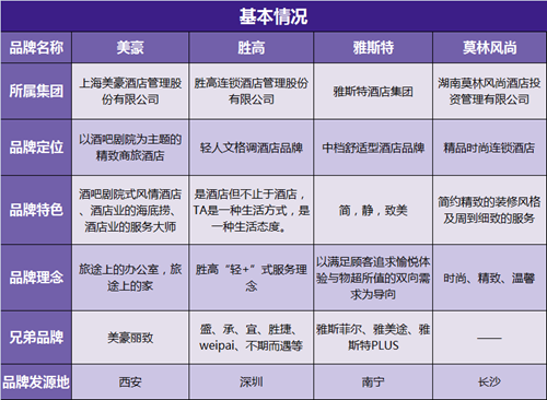 总结分析:华中地区中档品牌首选之一可以是莫林风尚,北上最好的精选服务品牌可以尝试选美豪、胜高或雅斯特。