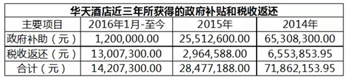 近三年,华天酒店获得的政府补助将近1亿,仅在2014年就获得了湖南财政厅6000多万元的补助,当年公司净亏损9884.15万元。